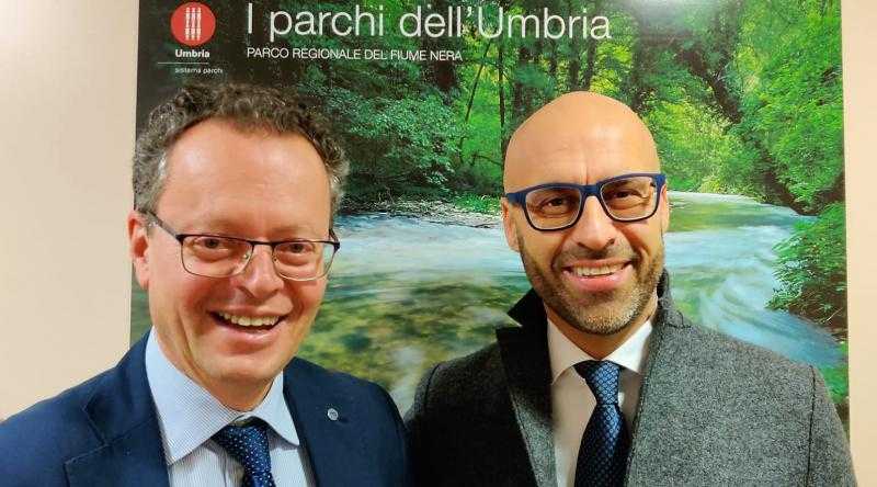 (Acs) Perugia, 19 dicembre 2019 – Visita istituzionale nella sede degli uffici regionali del presidente dell'Assemblea legislativa dell’Umbria Marco Squarta accolto dal vicepresidente della Giunta, Roberto Morroni. L'incontro è avvenuto stamani nella sede del Broletto ed è stata l'occasione per confrontarsi con l'assessore su alcune questioni legate all'agricoltura e sul ruolo dell’Assemblea per contribuire al rilancio di uno dei settori strategici per il sostegno dell'economia locale. Squarta e Morroni hanno portato il loro saluto ai dirigenti e al personale amministrativo. EB/PV/RED/DMB
