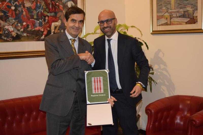 (Acs) Perugia, 17 dicembre 2019 – Il presidente dell'Assemblea legislativa dell'Umbria, Marco Squarta, ha incontrato oggi pomeriggio a Palazzo Cesaroni il nuovo prefetto di Terni, Emilio Dario Sensi, per un saluto ed un augurio di buon lavoro.