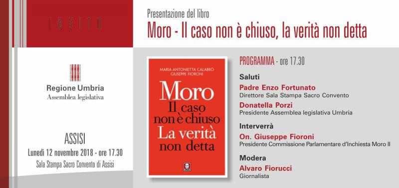 L'appuntamento, organizzato dall’Assemblea legislativa regionale, è in programma presso la Sala Stampa del Sacro Convento di Assisi e segue l’incontro del 15 ottobre a Palazzo Cesaroni (https://tinyurl.com/libro-moro). L'evento sarà aperto dai saluti della presidente Porzi e dal direttore della Sala stampa del Sacro Convento, Padre Enzo Fortunato. Interverrà l'autore del libro, l'onorevole Giuseppe Fioroni. Modererà il giornalista Alvaro Fiorucci. PV/AO/red/mp