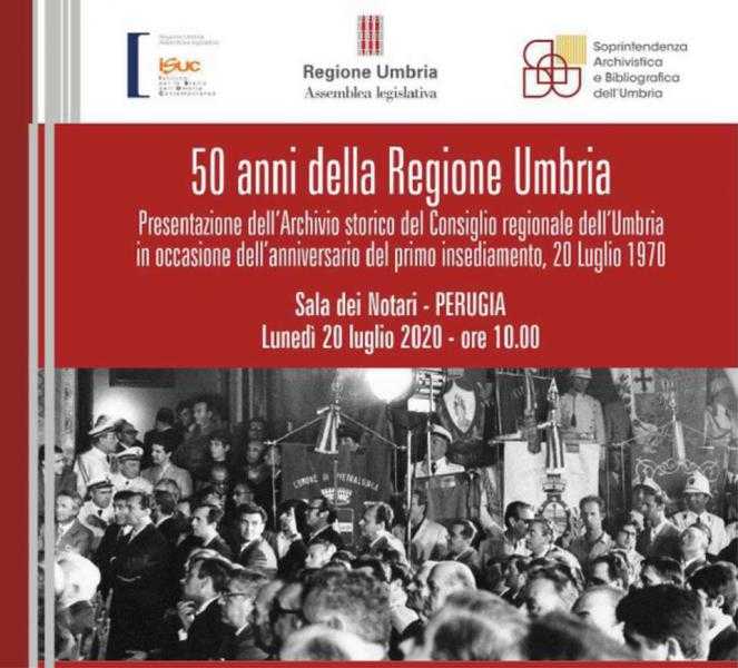 (Acs) Perugia, 19 luglio 2020 – “1970 – 2020: 50 anni della Regione Umbria”, l’anniversario del primo insediamento del Consiglio regionale (20 luglio 1970) verrà ricordato con la presentazione dell’Archivio storico dell’Istituzione. (https://tinyurl.com/yy3k4xf5 )