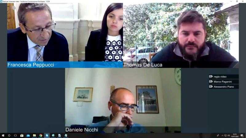 (Acs) Perugia, 14 luglio 2020 - La Commissione d'inchiesta “Verifica delle condizioni di inquinamento dell’area ternana e del Narnese” dell’Assemblea legislativa ha ascoltato questa mattina il direttore dell’Agenzia regionale per l’ambiente, Luca Proietti, per un approfondimento su qualità dell’aria ed emergenza Covid in Umbria. Ai componenti dell’organismo di indagine, Francesca Peppucci (presidente – Lega), Michele Bettarelli (vice presidente – Pd), Thomas De Luca (M5S), Daniele Nicchi (Lega) e al consigliere Daniele Carissimi (Lega), il direttore Proietti ha illustrato i dati relativi ai monitoraggi effettuati dall’Agenzia, con particolare riferimento al Ternano.