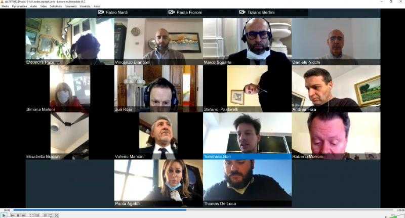 (Acs) Perugia, 3 aprile 2020 - Attività istituzionali di Commissioni, Comitati e delle sedute d’Aula in modalità telematica, ordine del giorno della seduta dell’Assemblea del 23 aprile prossimo, confronto tra Esecutivo e forze di minoranza sulla gestione dell’emergenza da Covid-19. Questi i temi al centro della riunione in videoconferenza di questa mattina della Conferenza dei capigruppo regionali allargata all’Ufficio di Presidenza.