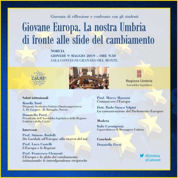 CALRE: “GIOVANE EUROPA. LA NOSTRA UMBRIA DI FRONTE ALLE SFIDE DEL CAMBIAMENTO” - GIOVEDÌ 9 MAGGIO ORE 9.30 A NORCIA PROSEGUONO LE GIORNATE DI CONFRONTO CON GLI STUDENTI