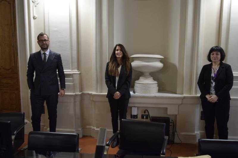 (Acs) Perugia, 29 maggio 2020 - Si è svolta stamani, nella splendida cornice della Sala Brugnoli di Palazzo Cesaroni, la cerimonia di insediamento del nuovo presidente Elena VESCHI e dei consiglieri Giuseppina BONERBA e Mirko MINUTI che guideranno per i prossimi 5 anni il Comitato regionale per le comunicazioni (Co.re.com.) dell’Umbria.