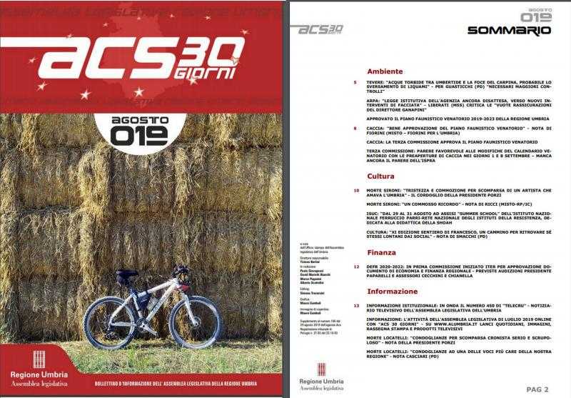 INFORMAZIONE: L'ATTIVITÀ DELL'ASSEMBLEA LEGISLATIVA DI AGOSTO 2019 ONLINE CON “ACS 30 GIORNI” - SU WWW.ALUMBRIA.IT LANCI QUOTIDIANI, IMMAGINI, RASSEGNA STAMPA E PRODOTTI TELEVISIVI