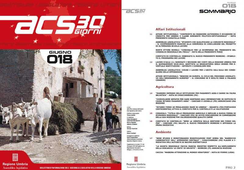 INFORMAZIONE: L'ATTIVITÀ DELL'ASSEMBLEA LEGISLATIVA DI GIUGNO 2018 ONLINE CON “ACS 30 GIORNI” - SU WWW.ALUMBRIA.IT LANCI QUOTIDIANI, IMMAGINI, RASSEGNA STAMPA E PRODOTTI TELEVISIVI