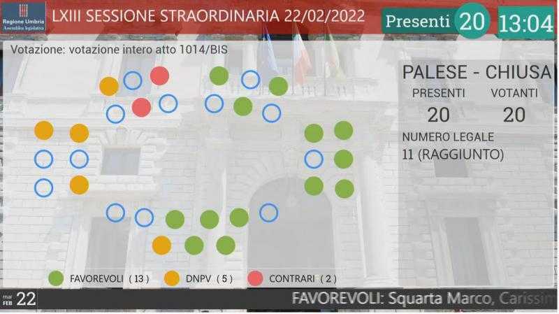 (Acs) Perugia, 22 febbraio 2022 – L’Assemblea legislativa dell’Umbria ha approvato con 13 voti a favore della maggioranza, 2 contrari (misto, M5S) e 5 non partecipanti al voto (Pd, Patto civico) il disegno di legge della Giunta per la modifica della legge ‘30/2000’ che istituisce l’Agenzia Umbria ricerche (Aur). Sono stati respinti 3 emendamenti a firma Thomas De Luca (M5S) e Donatella Porzi (Pd) sull’amministratore unico e sul comitato tecnico scientifico, mentre è stato approvato un emendamento della Giunta sull’entrata in vigore della legge.