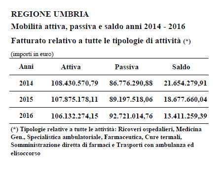Nel 2016 la mobilità attiva ha inciso per 106.132.274,15 euro e quella passiva per 92.721.014, euro, con un saldo di 13.411.259 euro.