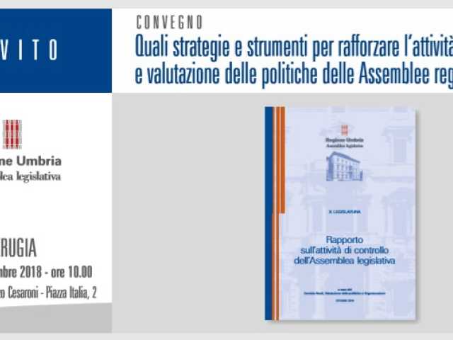 Sì è svolto stamani a Palazzo Cesaroni il convegno “Quali strategie e strumenti per rafforzare l’attività di controllo e valutazione delle politiche delle assemblee regionali”, organizzato dal Servizio studi, valutazione delle politiche e organizzazione dell’Assemblea legislativa dell’Umbria, che per l’occasione ha presentato il primo “Rapporto sull’attività di controllo assembleare”, un documento in cui si rendono note le attività di valutazione di leggi e politiche regionali in relazione all’effettiva rispondenza delle azioni messe in atto con i bisogni della collettività regionale.