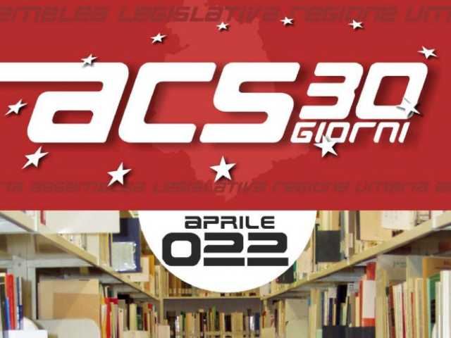 Data11 Maggio 2022“ACS 30 GIORNI”, APRILE 2022 - ONLINE IL MENSILE SULL'ATTIVITÀ DELL'ASSEMBLEA LEGISLATIVA