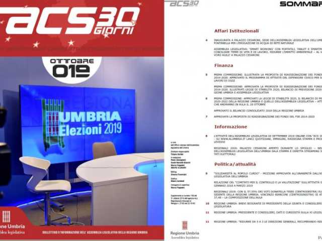 Data7 Novembre 2019INFORMAZIONE: L'ATTIVITÀ DELL'ASSEMBLEA LEGISLATIVA DI OTTOBRE 2019 ONLINE CON “ACS 30 GIORNI” - SU WWW.ALUMBRIA.IT LANCI QUOTIDIANI, IMMAGINI, RASSEGNA STAMPA E PRODOTTI TELEVISIVI