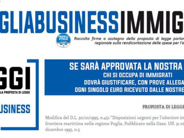 Il consigliere regionale Marco Squarta (FdI) annuncia l'avvio di una raccolta di firme a sostegno di “una legge parlamentare di iniziativa regionale per obbligare cooperative, associazioni e privati che si occupano della gestione dei migranti a rendicontare in maniera puntuale e dettagliata le spese sostenute”. Per Squarta “i rimborsi devono avvenire sulla base delle spese effettivamente sostenute dagli operatori e non su criteri forfettari pro-capite e giornalieri legati alla sola presenza dei migranti nelle strutture”.