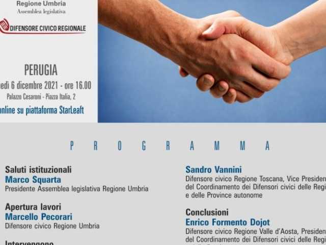 Data2 Dicembre 2021“LA DIFESA CIVICA E I RAPPORTI CON I CITTADINI” – LUNEDÌ 6 DICEMBRE, ORE 16, INCONTRO PUBBLICO ONLINE FRA DIFENSORI CIVICI DELLE DIVERSE REGIONI ITALIANE