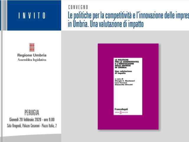 Data19 Febbraio 2020ALL’ATTENZIONE DELLE REDAZIONI///DOMANI, GIOVEDÌ 20 FEBBRAIO PRESENTAZIONE A PALAZZO CESARONI DELLA RICERCA “LE POLITICHE PER LA COMPETITIVITÀ E L’INNOVAZIONE DELLE IMPRESE IN UMBRIA”
