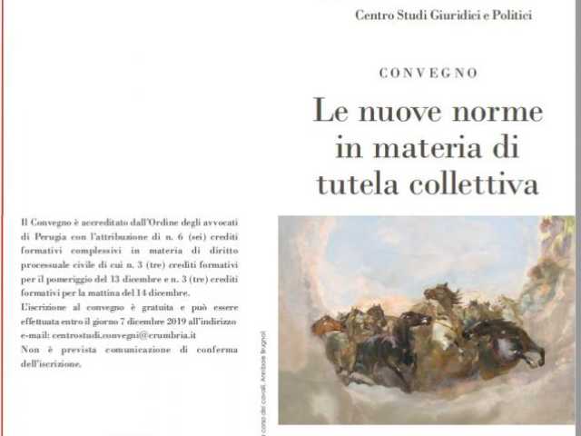 Data13 Dicembre 2019CENTRO STUDI GIURIDICI: “LE NUOVE NORME IN MATERIA DI TUTELA COLLETTIVA” - OGGI E DOMANI CONVEGNO A PALAZZO CESARONI