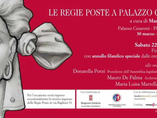 La mostra ‘Le Regie Poste a Palazzo Cesaroni’, inaugurata lo scorso mese di marzo nella sede dell’Assemblea legislativa dell’Umbria, terminerà sabato 22 settembre 2018. Alla cerimonia conclusiva, che si svolgerà alle ore 11, parteciperà la presidente Donatella Porzi.