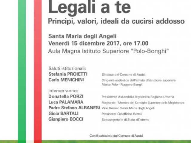 Data15 Dicembre 2017ASSEMBLEA LEGISLATIVA: “LÉGALI A TE. PRINCIPI, VALORI, IDEALI DA CUCIRSI ADDOSSO” - CONVEGNO A SANTA MARIA DEGLI ANGELI OGGI VENERDÌ 15 DICEMBRE ORE 17. INTERVERRÀ PRESIDENTE DONATELLA PORZI. III Lancio